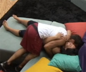 Melancia, a Fazendeira da semana, pediu um abraço ao colega Sergio Abreu e foi prontamente atendida, com um amasso com direito a beijinho.